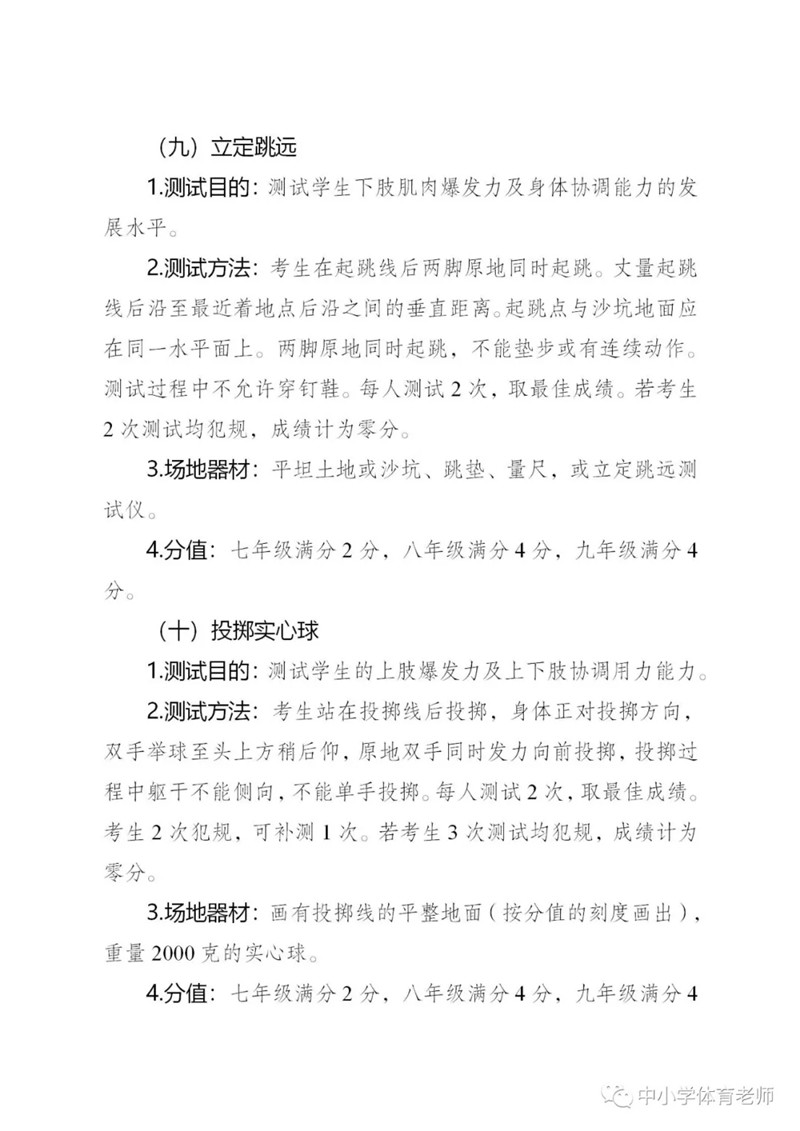 ? 初中學生體育考試方案全文: