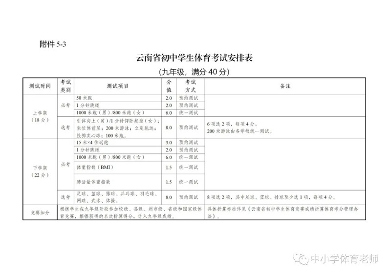 現(xiàn)將《云南省初中學生體育考試方案》《云南省初中學生音樂考試方案》《云南省初中學生美術考試方案》印發(fā)給你們,自2020年9月入學的七年級學生起施行。